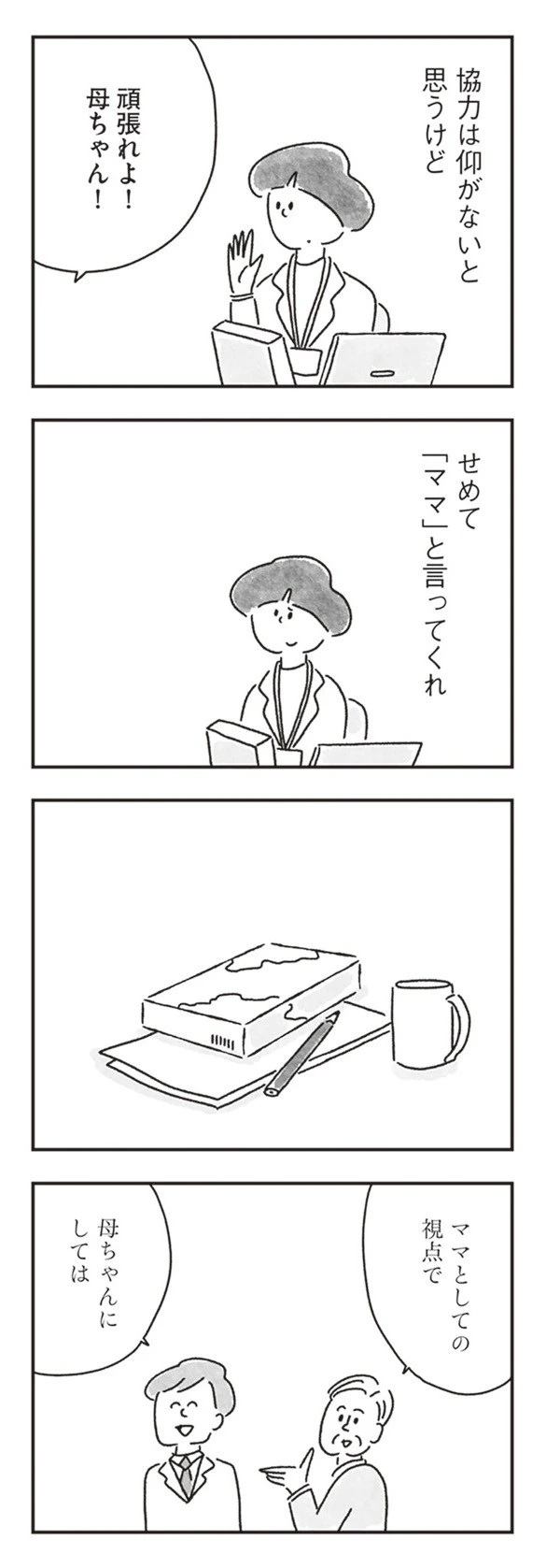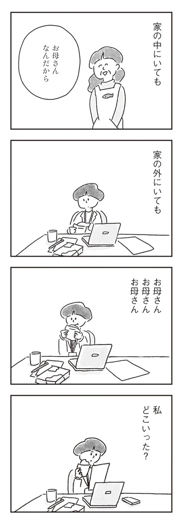 かつて一緒に働いていた同僚からも「母ちゃん」と呼ばれ、家の中でも外でも「お母さん」と呼ばれる毎日。最近の自分は“お母さん”としてしか存在していないのかもしれない——そう気づいた瞬間、ゆみさんは思わず心の中でつぶやきます。私、どこいったんだろう。
