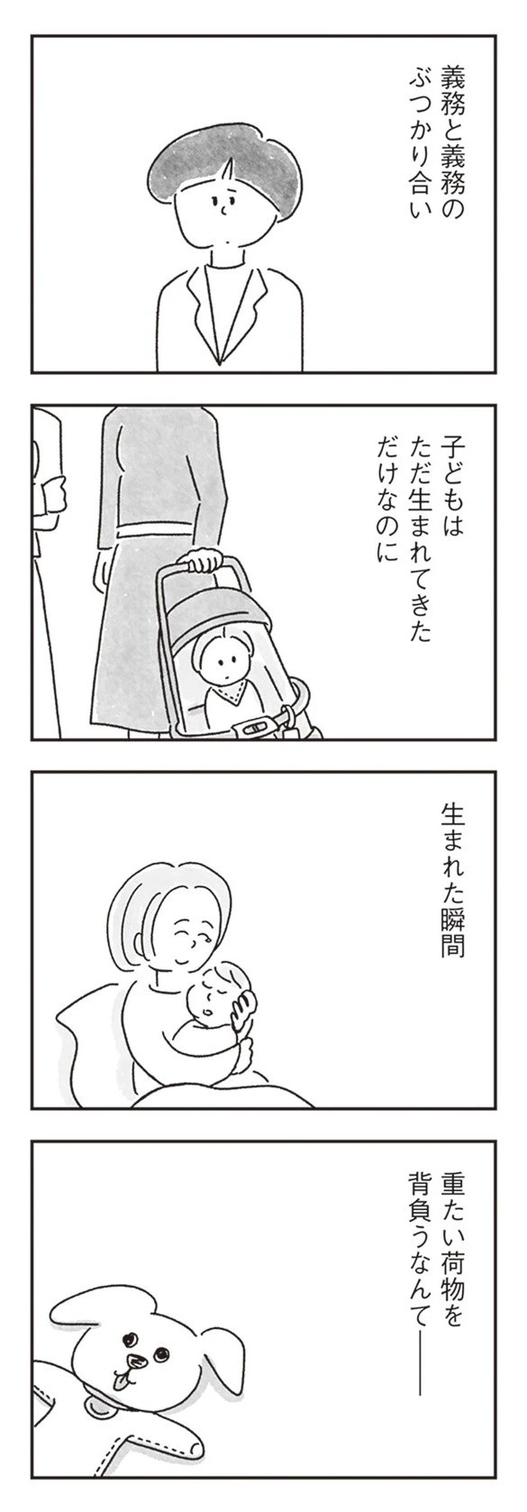 子どものいる人、いない人、それぞれに違った思いがあるのだと思います。子どもはただ生まれてきただけなのに、生まれた瞬間からいろいろな“重い荷物”を背負わされてしまう——そんな現実に、ゆみさんはふと胸が締めつけられるのでした。