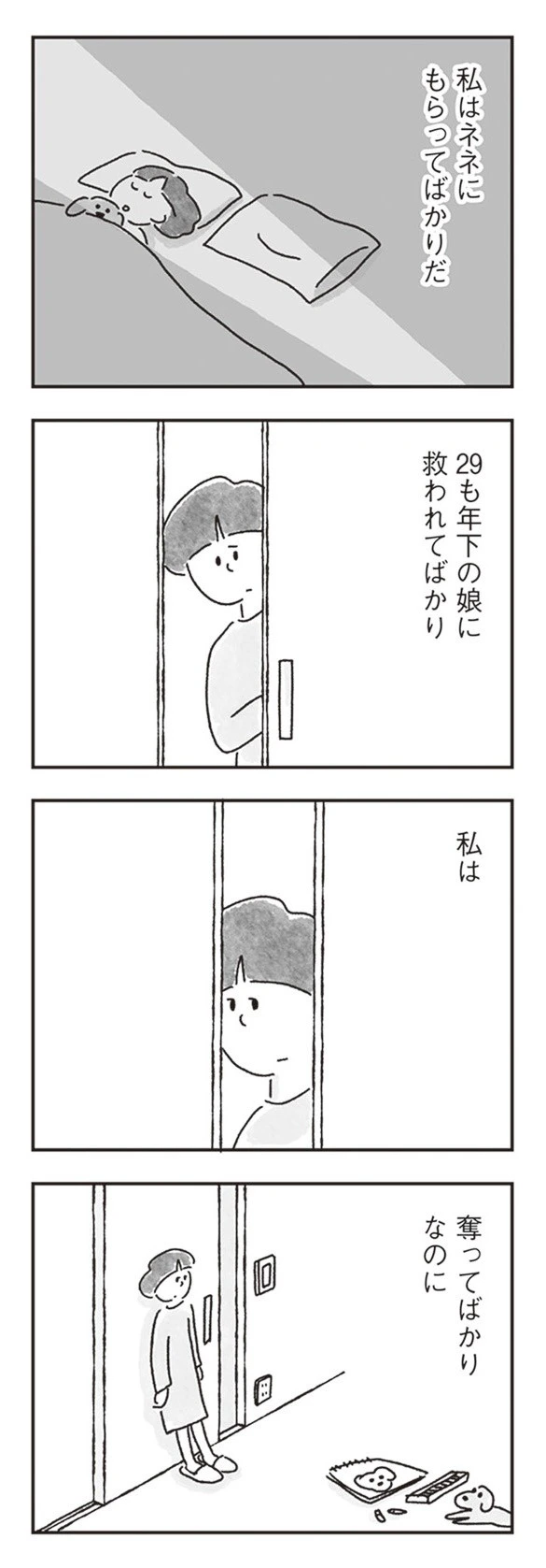 自分は娘からもらってばかりで、娘から奪ってばかりなのではないか——そう思うと、ゆみさんはふと落ち込んでしまいます。いつも娘のことを思いすぎるほど思っているのに、どうしてもいっぱいいっぱいになってしまう瞬間があるのですね。