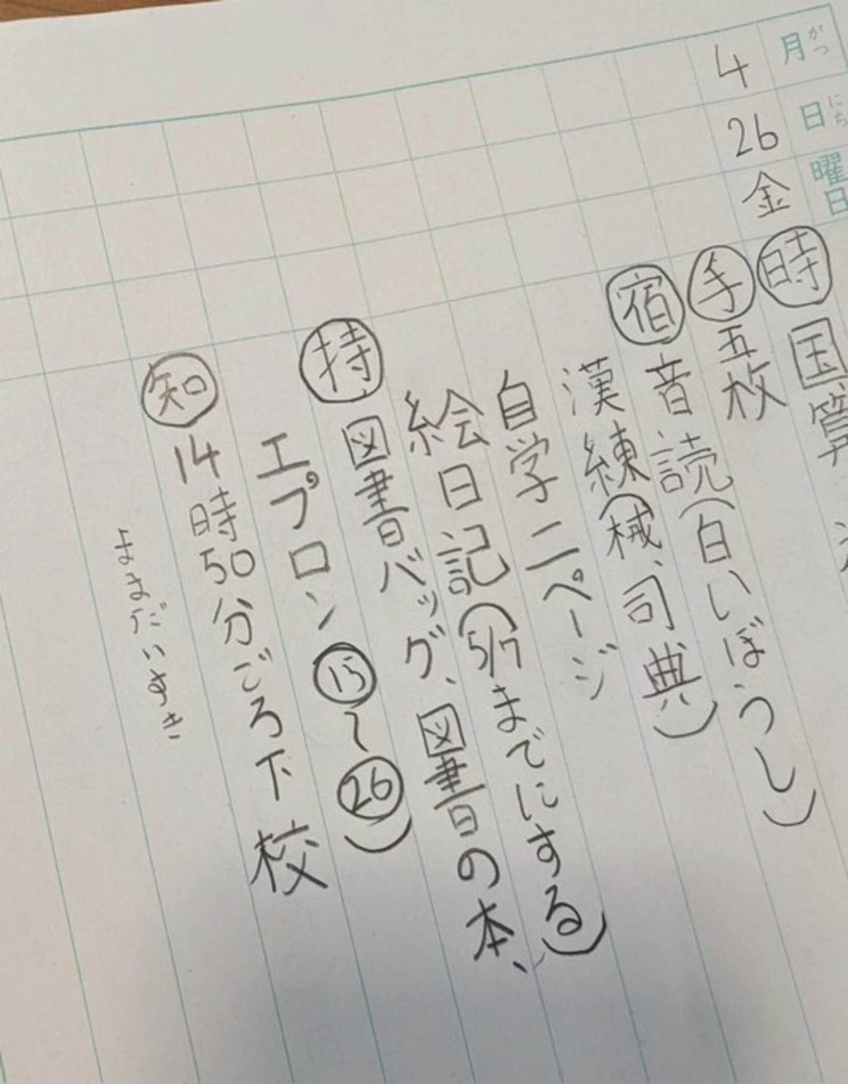投稿者・トリッシュ(@torish935)さんの娘は、ある日の連絡帳にとってもかわいい一文を書き足していたそう。一体どんなことを書いてきたのでしょうか。