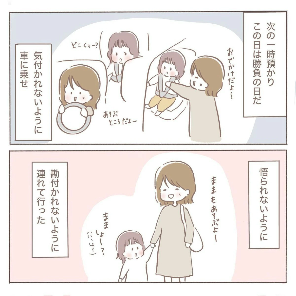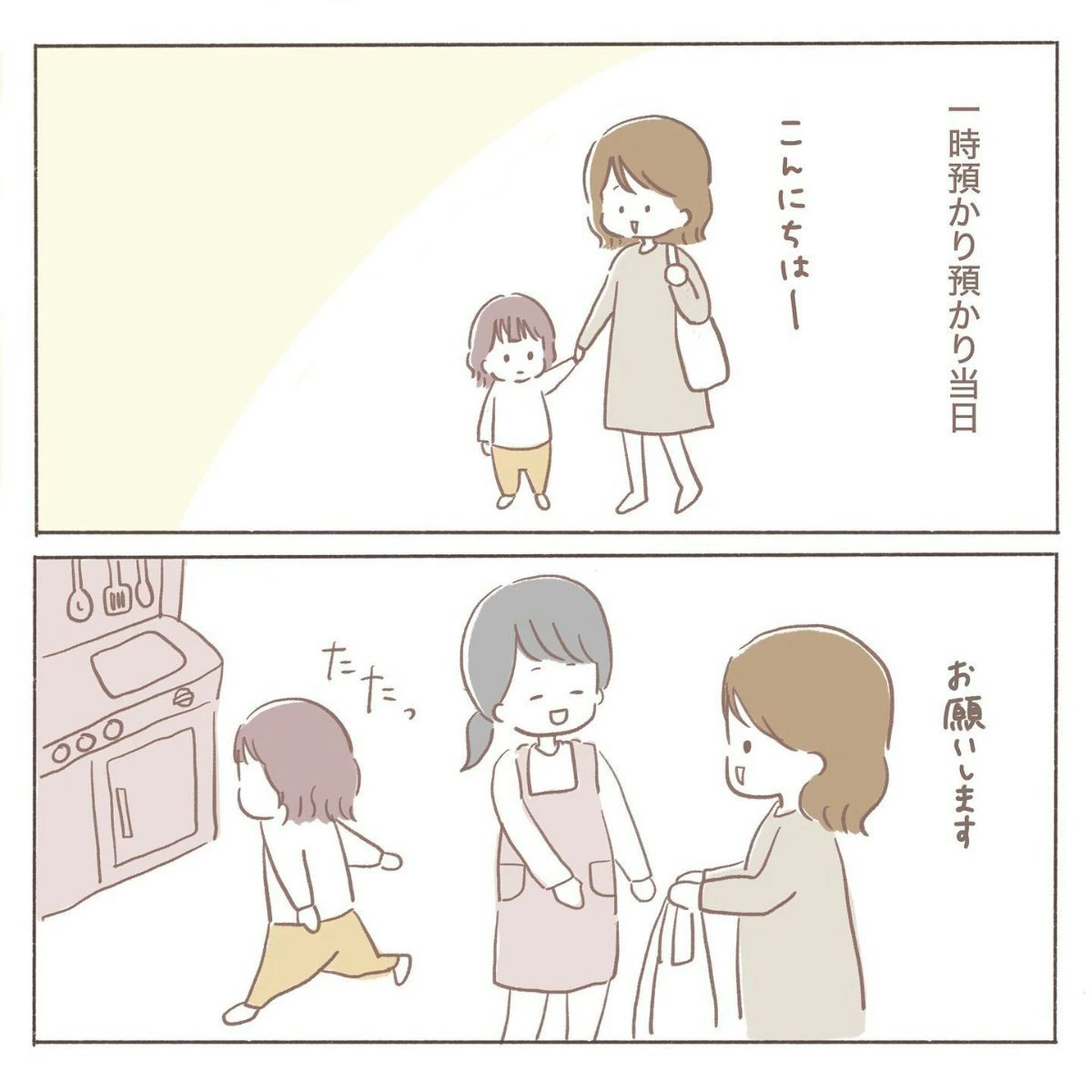 通院のため、子育て支援センターの一時預かりを利用しました。母・ころもさんが想像していたよりも、出だしはスムーズ。ころもさんにとっても、通院とはいえ、久しぶりのひとり時間にワクワクします。