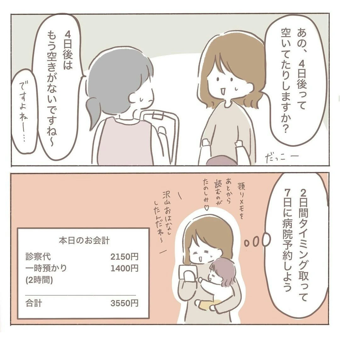 7日後は、夫が夜勤のため、その日に病院を予約しました。