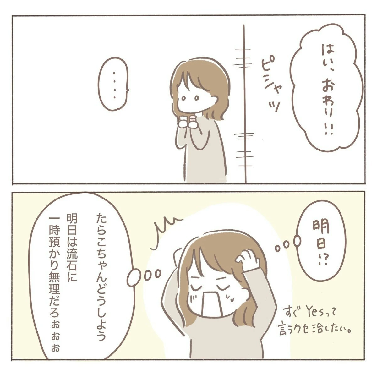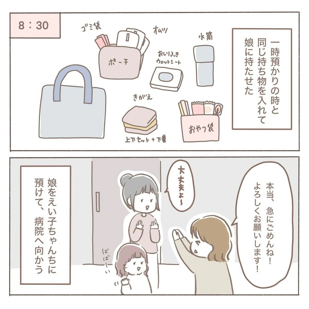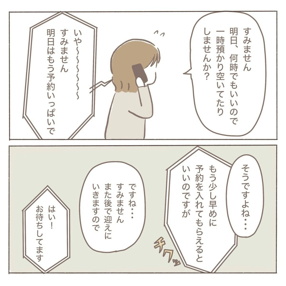 「明日」と告げられたら、誰でも驚きますね。さらに急きょ、娘の預け先を確保しなければいけません。頼みの綱の一時保育はいっぱいでした…。