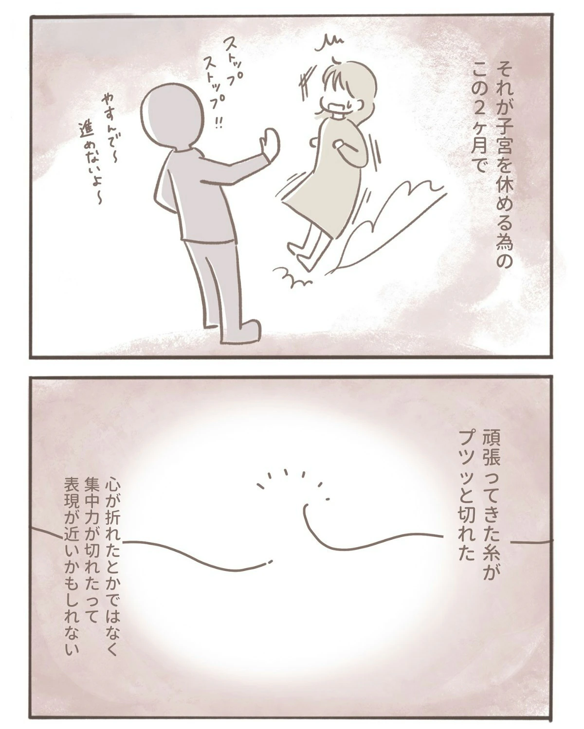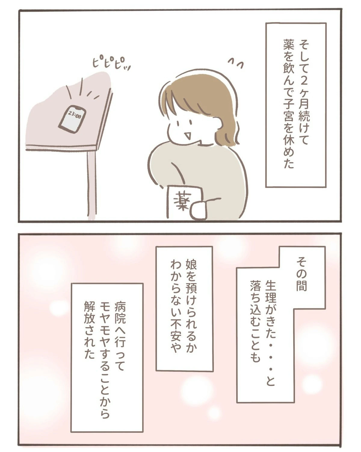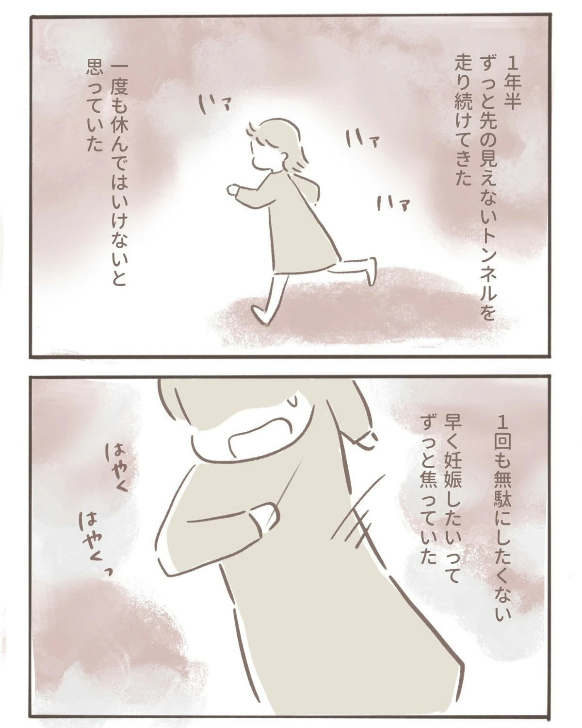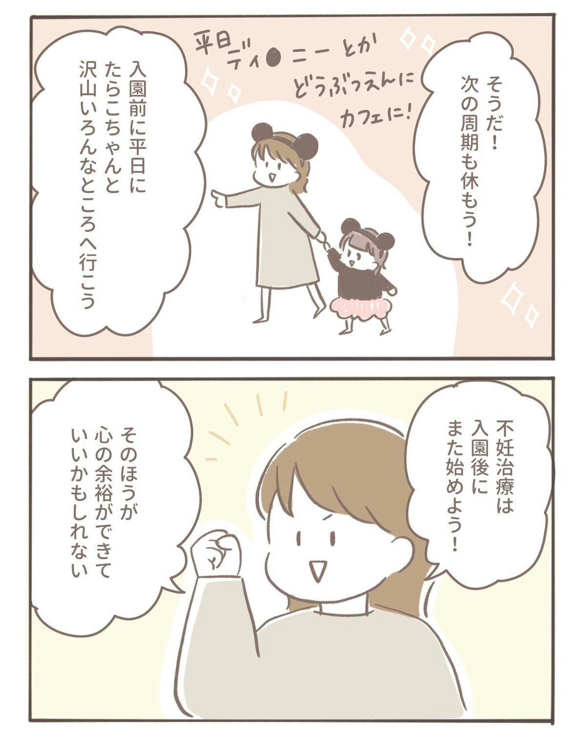 思わぬ形で、不妊治療を一時お休みすることになりました。ですが、今までの落ち込みや不安、モヤモヤから解放され、久しぶりに娘と向き合い、穏やかな日常を過ごします。今までノンストップで走り続けていたため、今回のお休みは心身とも回復につながりそうです。