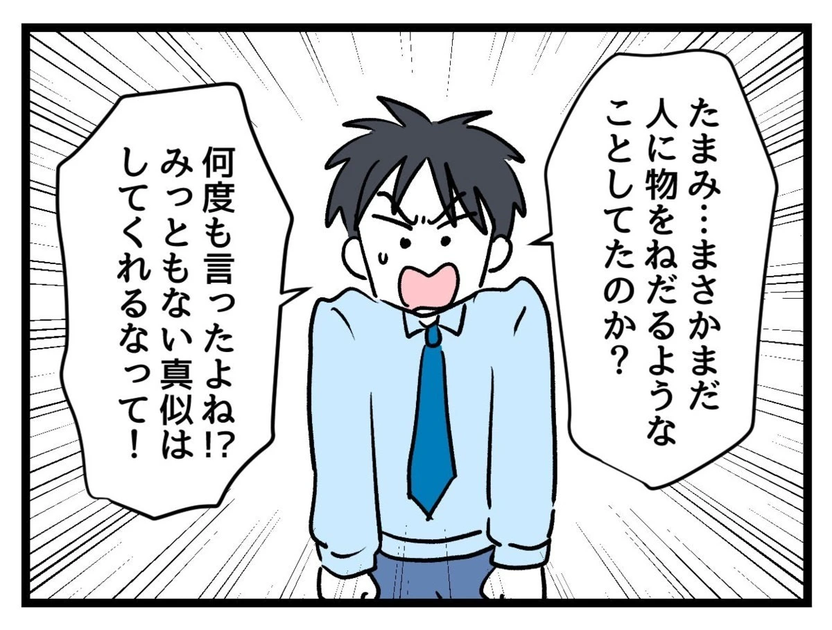 子ども同士でモノをあげる行為は、本当に危険ですね。しかし、まいは母・たまみが、いつも他人にモノをねだることばかりしていたため、欲しいものは「盗んででも手に入れる」ことが常識となってしまったようです。夫が言う通り「悪気がない」のは大問題です。