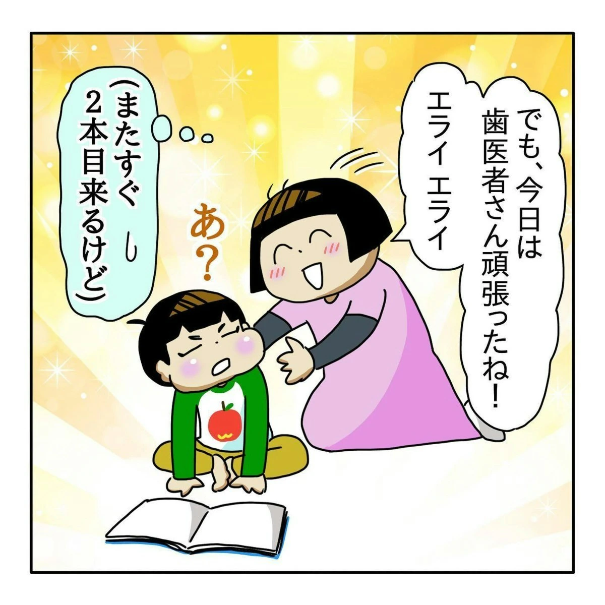 まだ成長途中の子どもの体、どうなってくかは予測が難しいため、様子見となりました。まずは今日、歯医者をがんばったことをほめます。