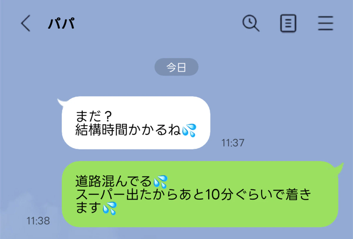 家を出てから30分くらい経って「結構時間かかるね💦」とのLINE。