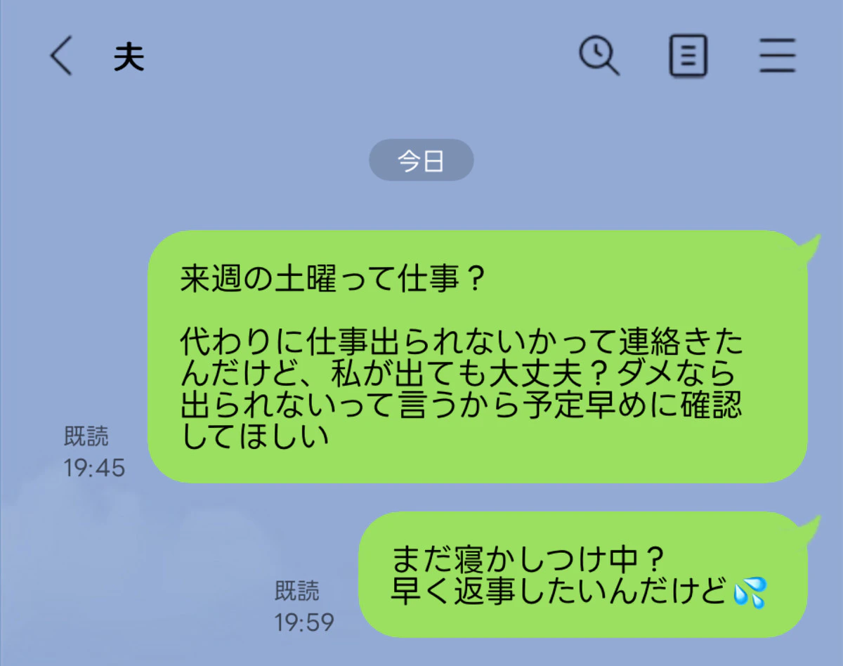 しかし、投稿者さんの場合は、不満を持っている様子。家事に関しては、やり方がわからなかったり、不得意なこともあったりするでしょうが、おむつ替えや寝かしつけなど、子どものことに関しては、保護者の責任として、「やらない」という選択肢はないのではないでしょうか。