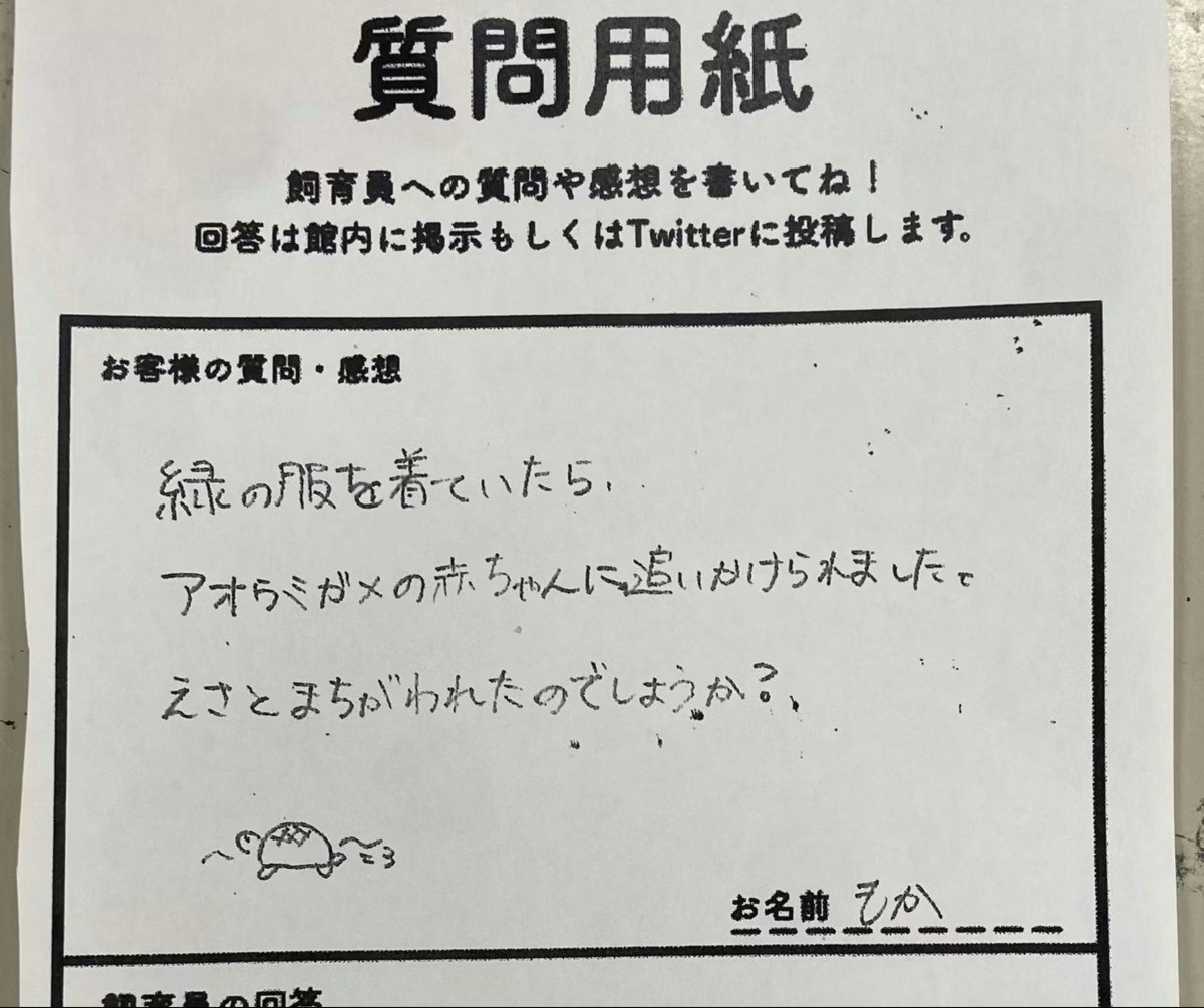今回は、質問への回答をしている投稿をご紹介します。ウミガメへの愛を感じる飼育員さんの言葉をぜひごらんください。