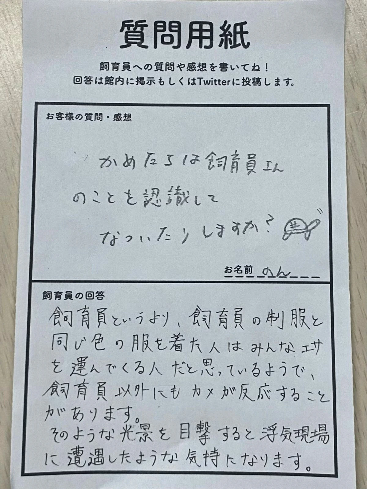 「浮気現場に…」ウミガメ飼育員の回答に34万いいね