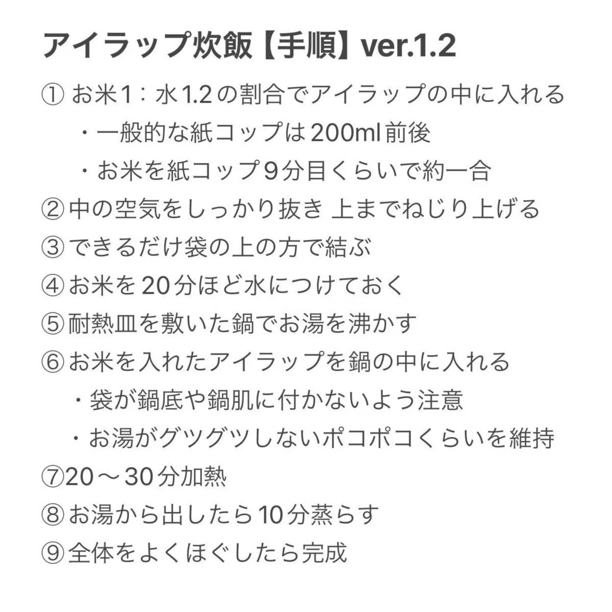 公式発信、アイラップで簡単にご飯が炊ける方法をぜひごらんください。