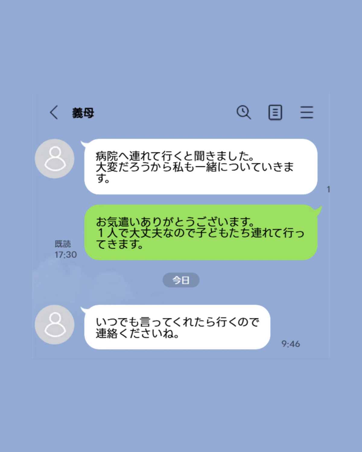 「病院がおわった後に連絡を入れる」という意見が見られました。「一人でもだいじょうぶ」だということを示せますし、子どもの様子も気になっているでしょうから、報告もできますよね。