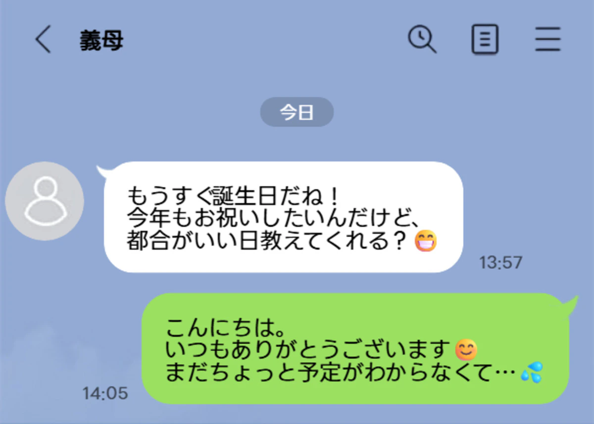 投稿者さんは、夫と誕生日が近いことから、義母に誕生日を祝ってもらうことが恒例となっているようですが、本音はやめてほしいようです。