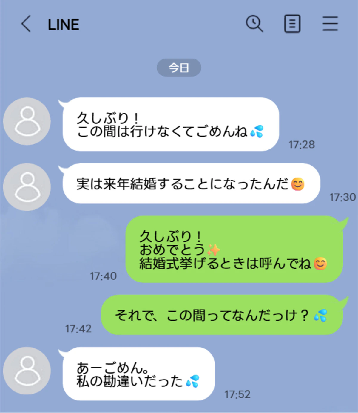 その後数ヶ月してからCが結婚の報告をくれた際に「この前は行けなくてごめんね」と言っており、私はそこで、みんなで集まっていたことを初めて知りました。