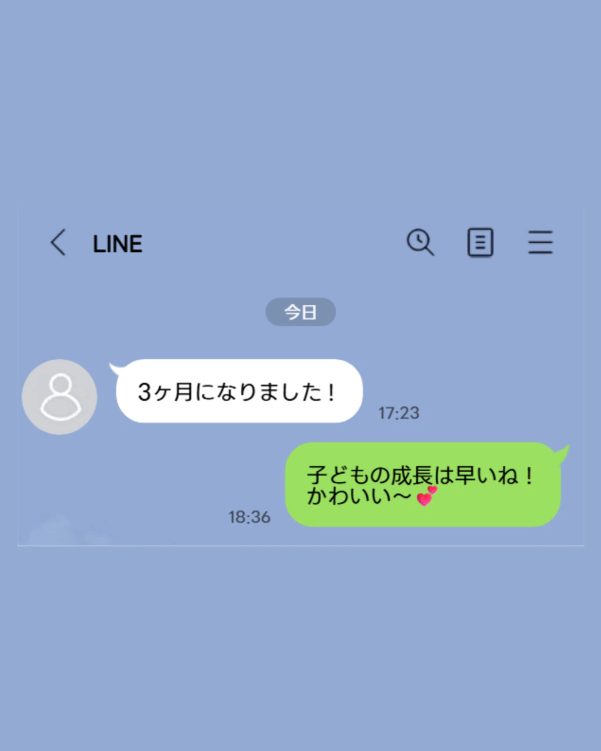 毎月◯ヶ月になりました!ってLINEと写真送ってくれて返信するんだけど、そこから返信ないこと多い笑😂😂