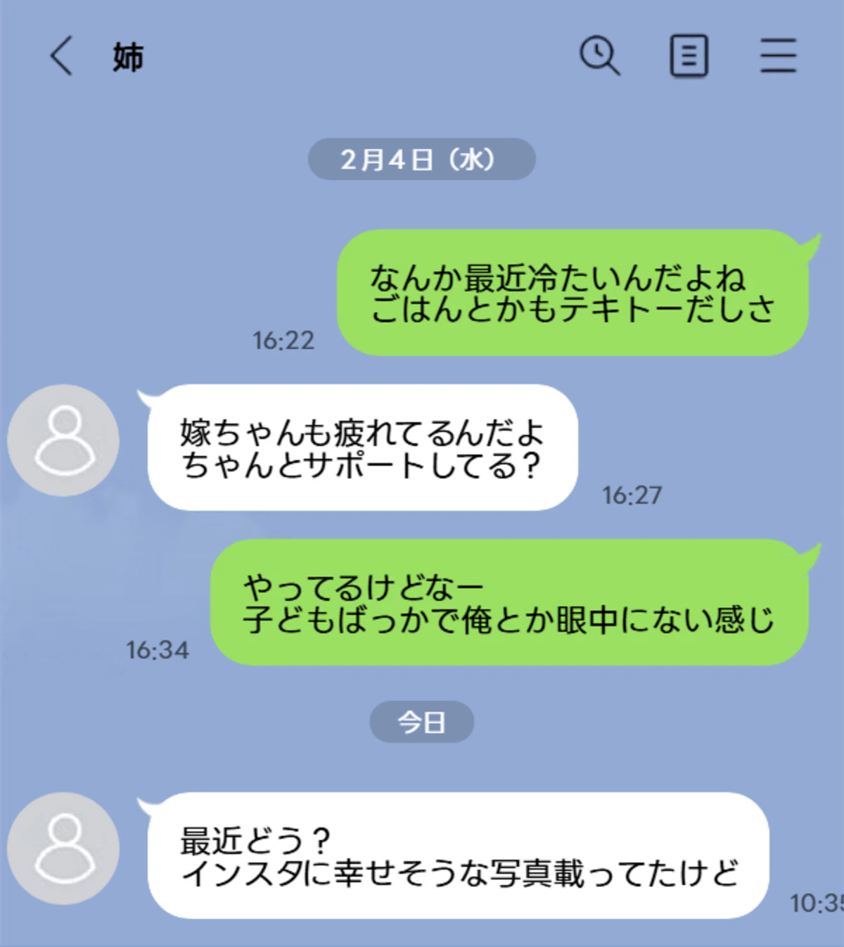 自分の知らないところで、夫と義姉が自分に対するグチを共有していたことを知った、投稿者さん。信じていた夫が、自分のイヤなところを家族に話していたというのは、ショックですよね。