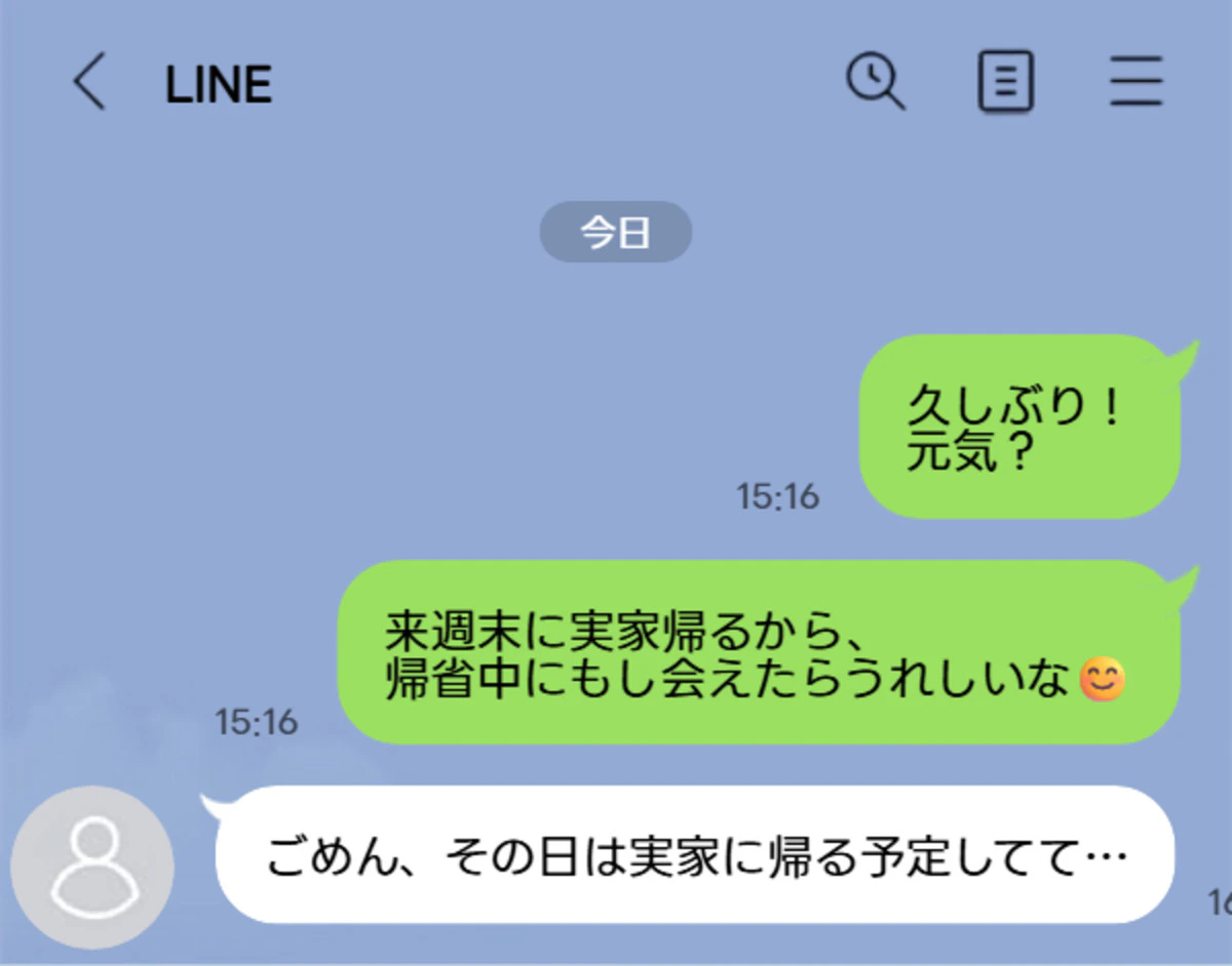 それでも1ヶ月前くらいに友達に連絡してこの期間もし会えたら嬉しいって感じでLINEしてます。