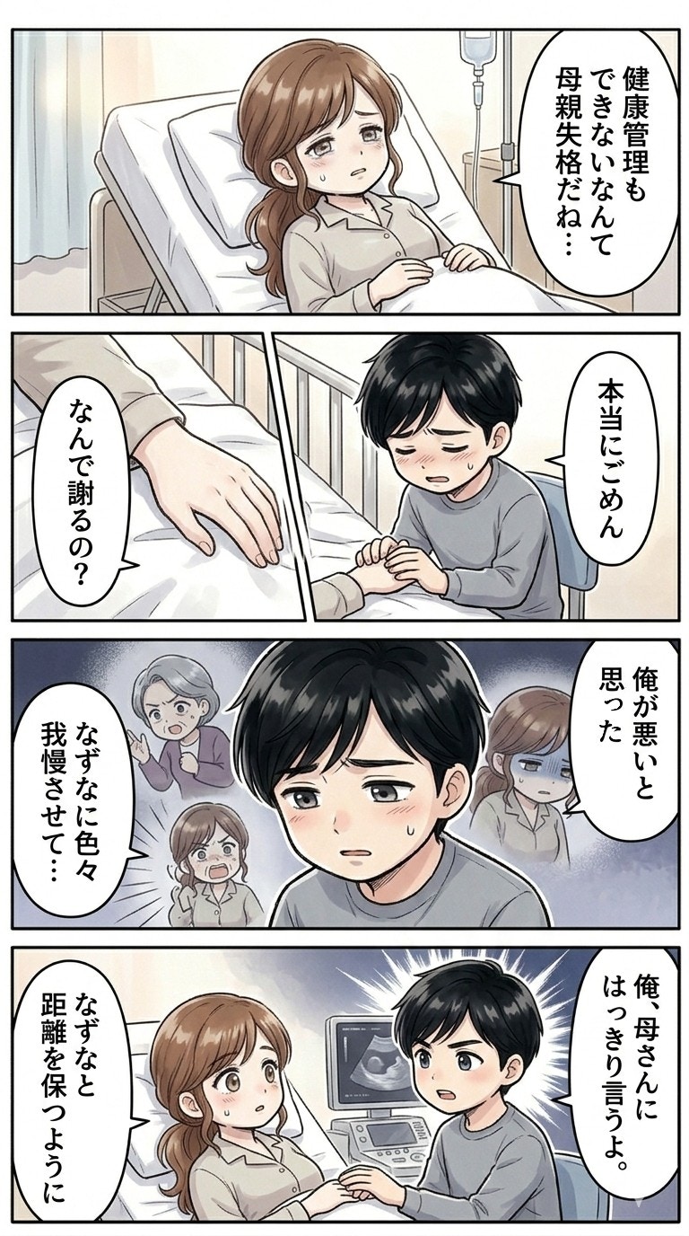 義母の過干渉が、なずなさんの体にこれほどの影響を及ぼしていたことに胸が痛みます。しかし、この危機を通じて、優斗さんがついに自分の非を認め、なずなさんを守る決意をしたことは、大きな希望ですね。彼が涙ながらに謝るシーンは、物語の大きな転換点です。次のエピソードで、夫がどのように義母と対峙するのか、ぜひ見届けてください。