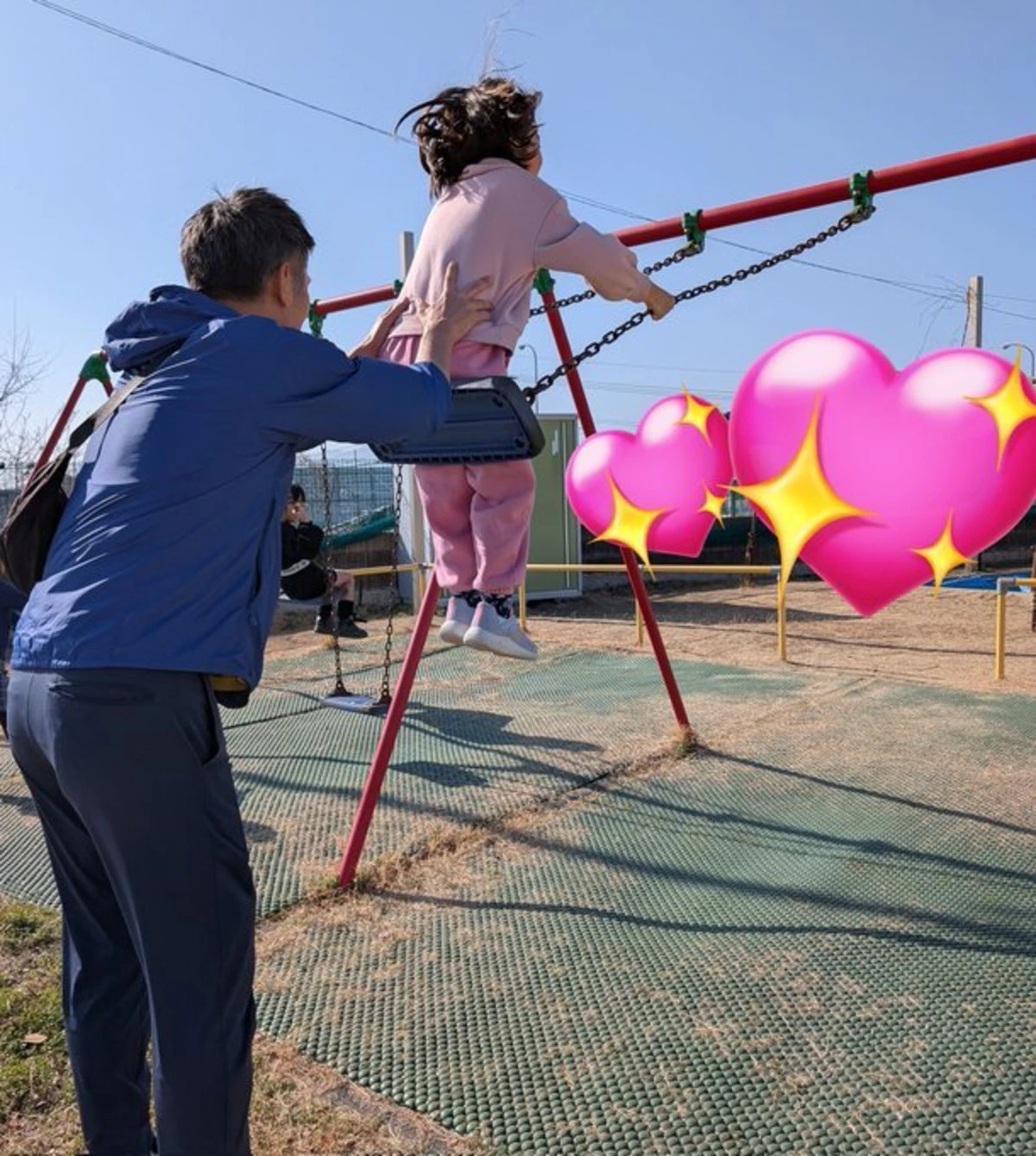 高3の春。大好きな人に告白し玉砕。帰り道このブランコで号泣した。あれから約30年。今は我が子がそのブランコに☺️。子の背中を押すパパは、当時アタシをふった彼。夫よ、なんだかんだあったけどアタシと結婚して正解やよ👍 高3の「アオハルな愛💞」を、一生注ぎ続けるぜっ😎✨ ※1