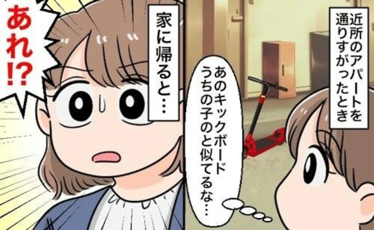 今回ご紹介するのはアプリ「ママリ」に寄せられた、小学生の子どもをもつ投稿者さんからの相談です。投稿者さんは自宅の駐輪場にクリスマスに購入したばかりの子ども用キックボードを保管していました。ある日、仕事で外回りをしていると、近所のアパートに我が子のと同じキックボードを発見。その後、自宅の駐輪場を確認するとキックボードはなくなっていたそうです。もしかして盗まれてしまったのでしょうか。