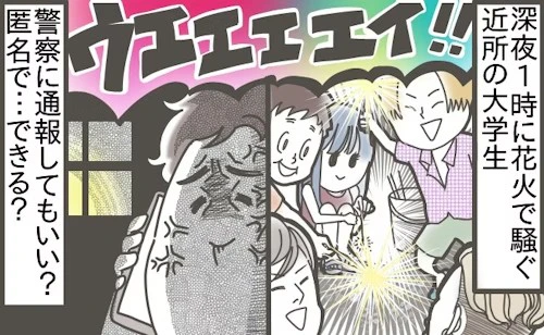 この記事では、アプリ「ママリ」に寄せられた投稿をご紹介します。投稿者のママによると、近所で高校生と大学生が夜中の1時に花火をしており、その騒ぎ声が気になって眠れなかったとのこと。「こういう場合、警察に通報してもいいのだろうか…」と迷っている様子でした。皆さんならどう対応しますか?この記事では、この投稿に寄せられたママたちの声をご紹介します。