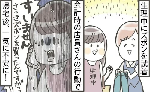 この記事では、アプリ「ママリ」に寄せられた投稿をご紹介します。投稿者ママは生理中にもかかわらず、パンツの試着をしたことに悩んでいるそうです。汚れがつかないように細心の注意を払ったものの、「やはり試着したからには購入すべきだったのだろうか…」と不安な気持ちに。試着室でのマナーや、生理中の試着に対する考え方は人それぞれ違うもの。こうした状況に直面したとき、みんなはどうしているのでしょうか。