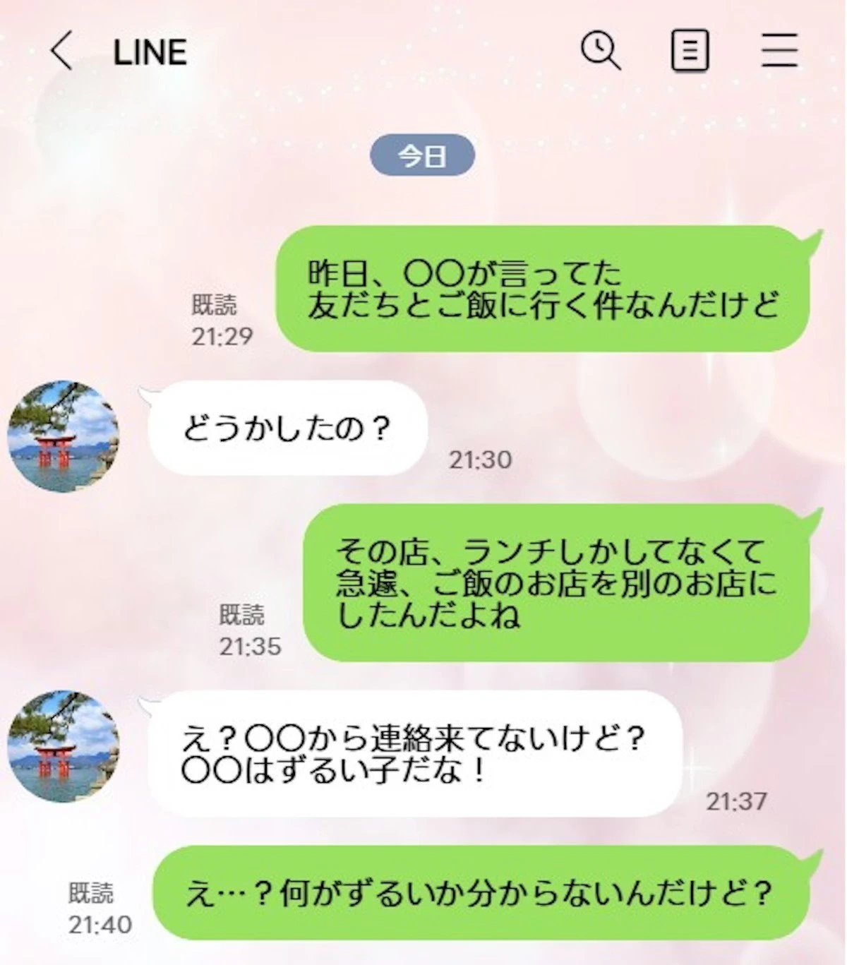 今は過去のトークは全部消されていますが、消される前にトークをじっくり見たことがあって、私が妊娠中で大変な時に女と一線を越したであろうトーク履歴がありました。「破れてる可能性あるから、よく洗っておいて」という会話でした。もうこれ、黒ですよね。気持ち悪すぎて、吐きそうでした。今は言っていないですが、いつか晒してやろうと思っています。