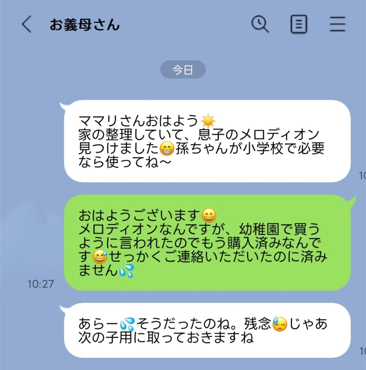 メロディオンは元々幼稚園で買ってあったのでそれを伝えて断りましたが、さすがに20年以上も前のメロディオンはどうなの😥と思ってしまいました、、、もし幼稚園で買ってなくてもお断りして新しいの買ってたと思いますが、これって断ったの私がおかしいでしょうか?兄弟感で体操服なんかはお古はありかなと思うんですが、親子のお古は私には考えられませんでした😥