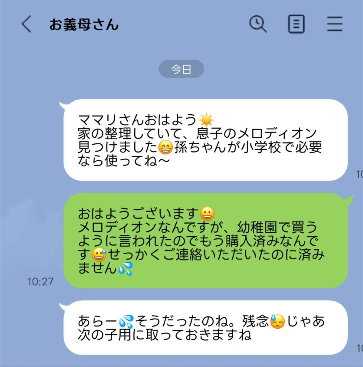 義母から、「夫が使ったメロディオンがあるから、使うように」と連絡をもらったという、投稿者さん。「ありえない」と感じたという投稿を紹介します。20年以上も前の物に、抵抗を感じたという投稿者さん。すでに、メロディオンは買っていたため、義母には、断りの連絡を入れたそうですが、義母との考え方のちがいにおどろいてしまったそうです。