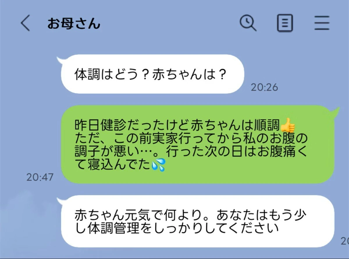 それなのに妊娠中期に入ってから妊娠報告をした私には「あんた、そんだけしか食べんの?そればっか食べとっちゃいかんって。二人分食べなさい。大昔からそうだったんだから」と言ってきます。