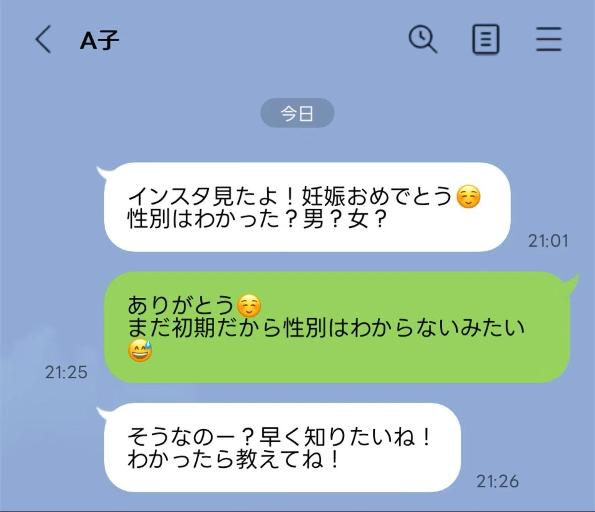 友人からLINEで性別は?分かった?どっち?と質問攻めされて正直嫌です🤢