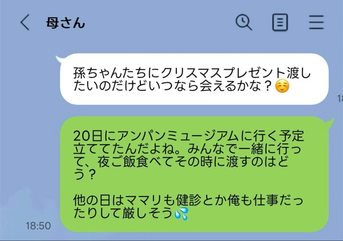 この記事では、義両親からクリスマスプレゼントを渡すために孫に会いたいと言われたため、一緒にアンパンマンミュージアムへ行かないかと誘ったという投稿を紹介します。快く行ってくれるかと思いきや、帰ってきたのは「60過ぎてそんな所は嫌だ」というものでした。元々義両親が嫌いだったという投稿者さんですが、これから関係を改善していきたいと思っていた矢先にこんなことを言われ、両親ならこんなことは言わないだろうに…と感じてしまったそうです。