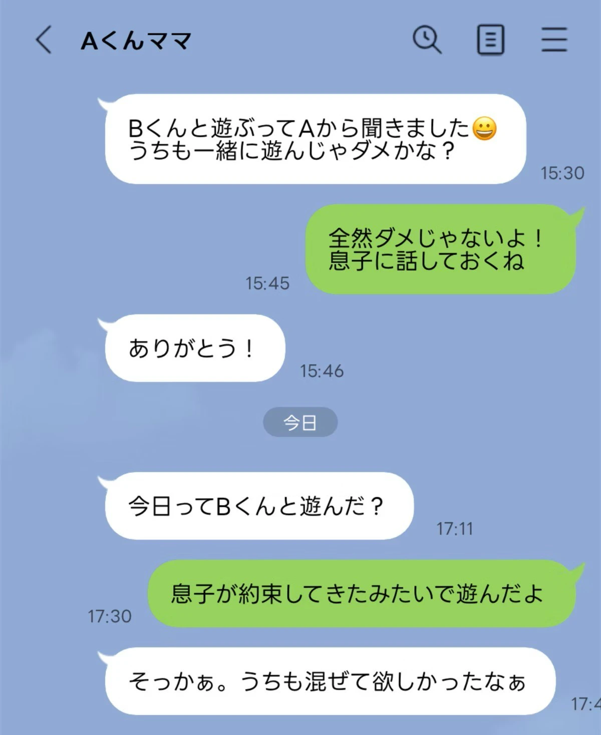 そんな感じで最近B君と遊ぶことが増えた事に対しA君のママもその話を聞いて