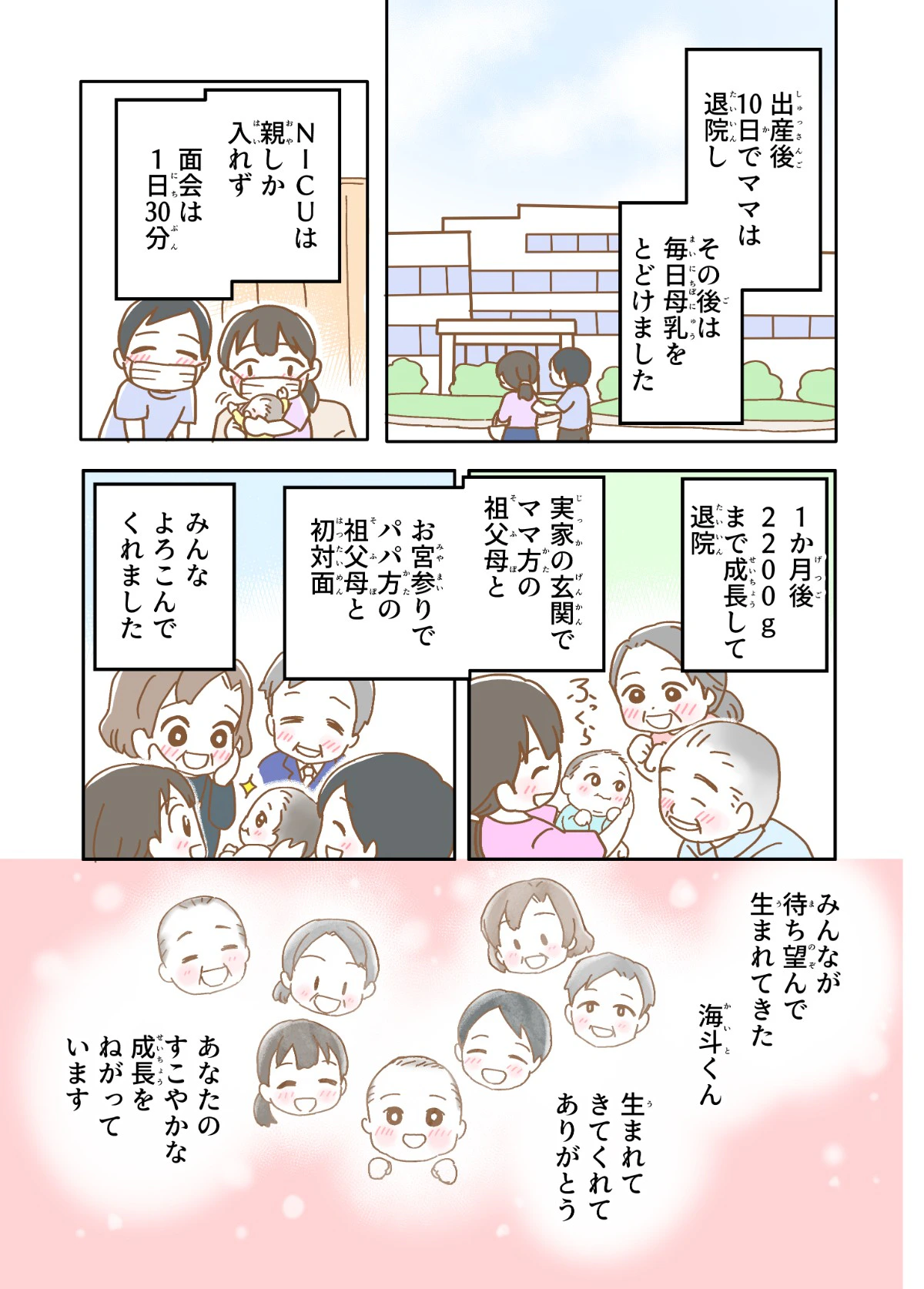 緊急での帝王切開となりましたが、主人公は無事出産。赤ちゃんはしばらく入院となりましたが、1か月後にはご家族と対面できたようでなによりですね。