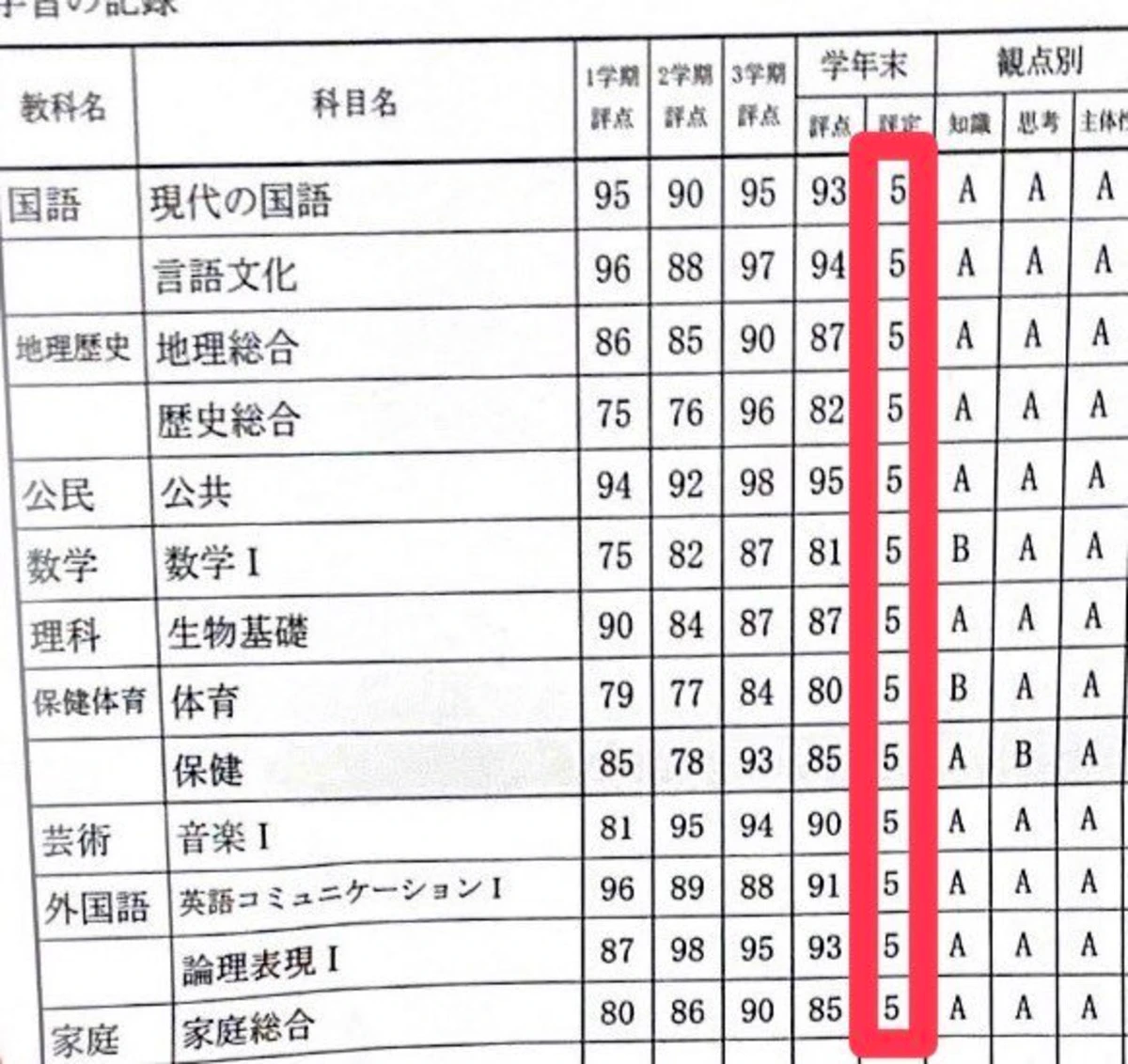 夢だった成績オール5叶ったよ‼️✨