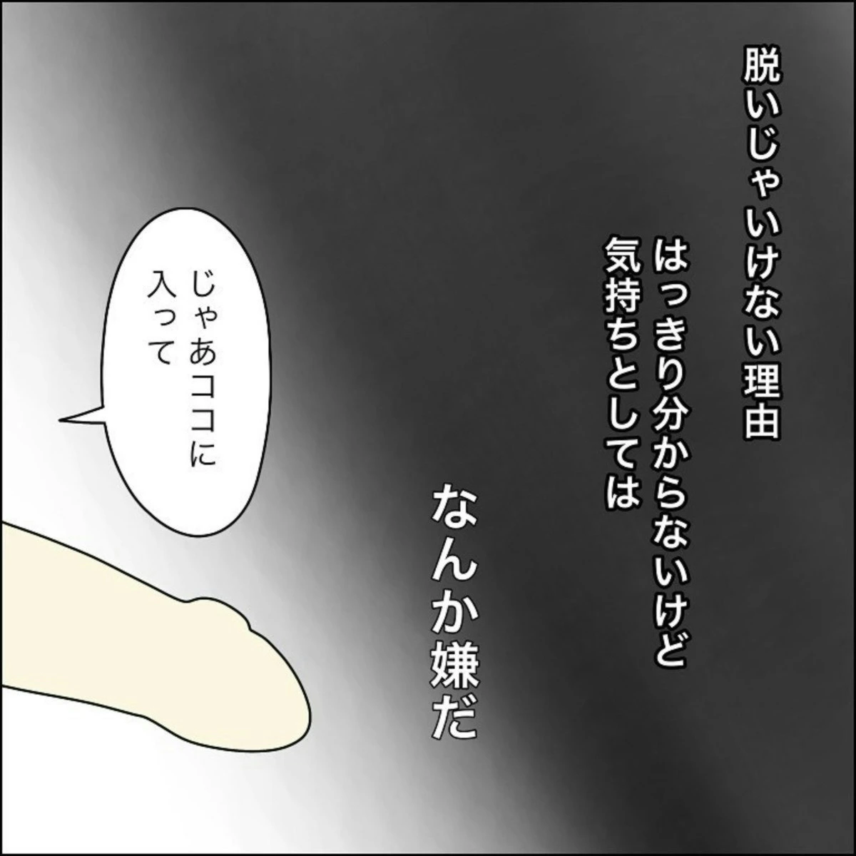 直感的に「イヤだ」と感じたという、ツマ子さん。この場をはなれ、お姉ちゃんに助けを求めてほしいですが、ツマ子さんは、言われるがままに服を脱いでしまったようです…。