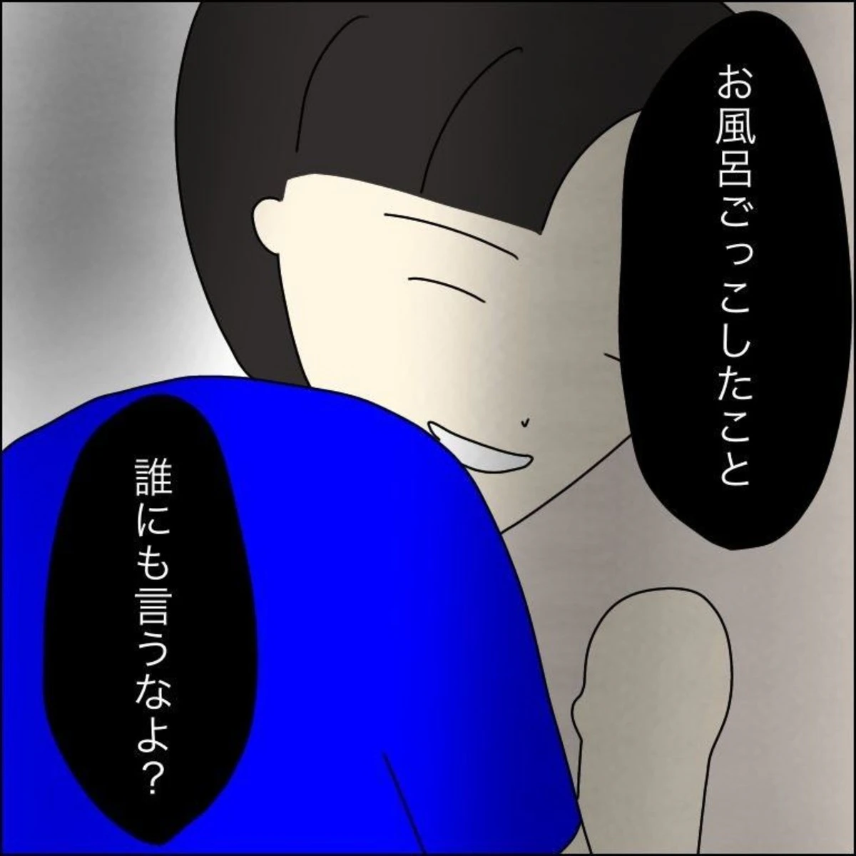 「俺は洗う役」と言うと、体をさわってきたという、Sくん。ツマ子さんは、体をできるだけ丸めながら、どうにか耐えていました。しかし、Sくんは、さらに「足を洗うから」と言い、ツマ子さんの足をさわり出したのです…。ツマ子さんは「いや!」と大きな声を出し、それにおどろいたSくんは、ようやく止めてくれたのでした。