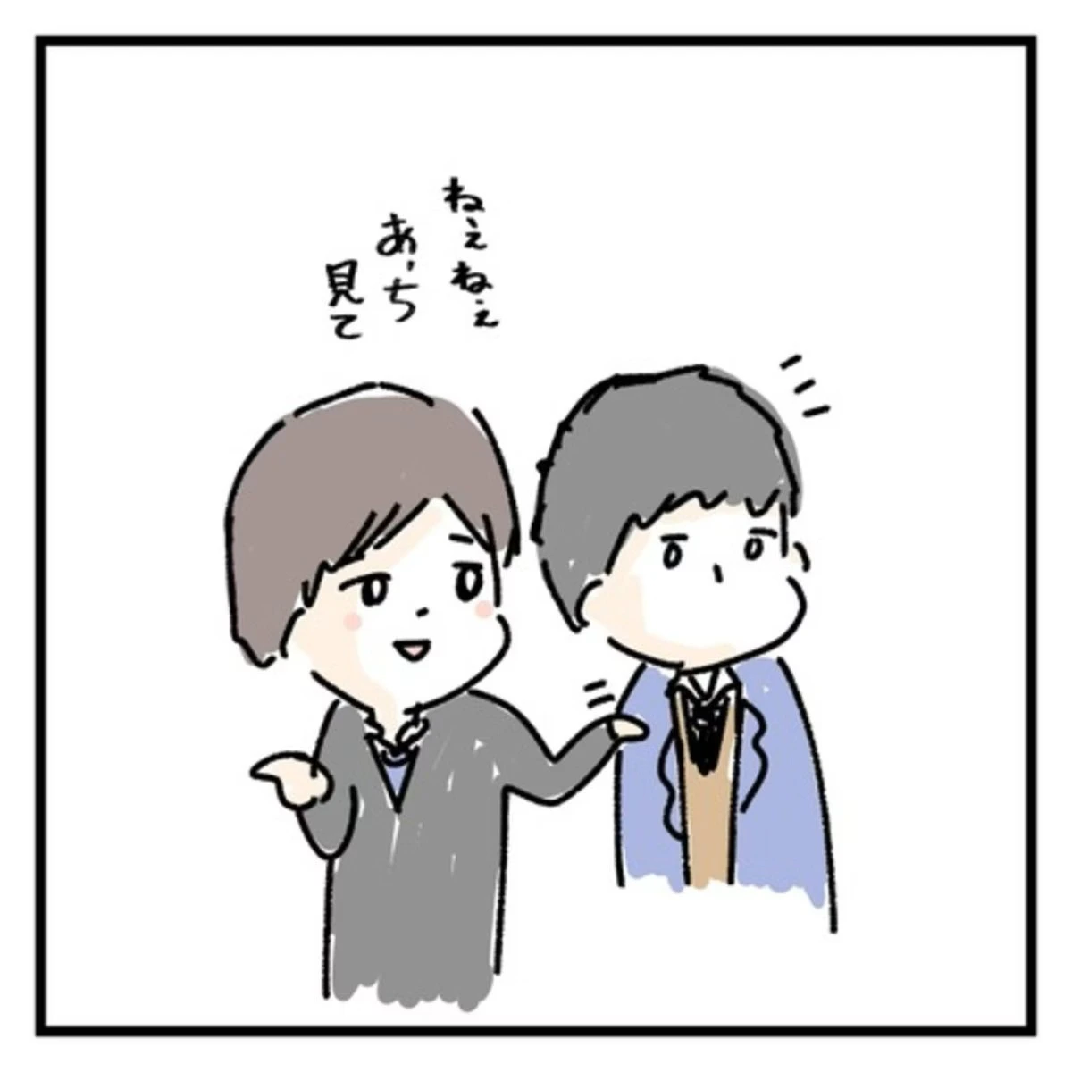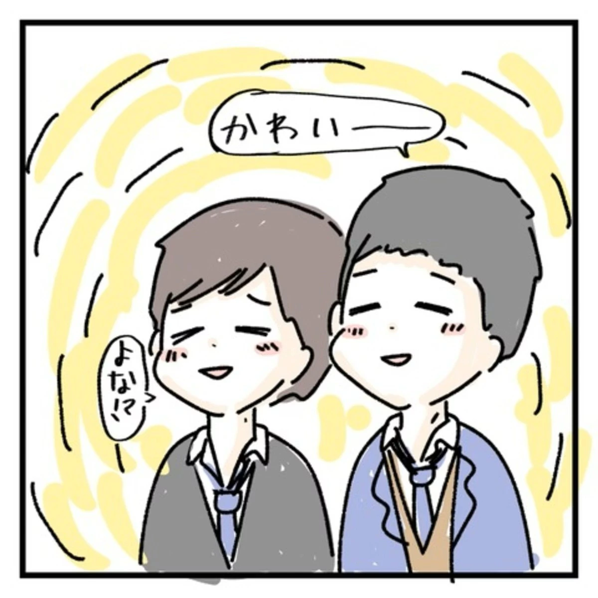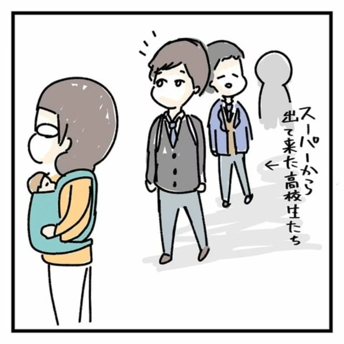 【漫画】赤ちゃんを見かけた男子高校生→友人の肩をたたいて…2千人がほっこり