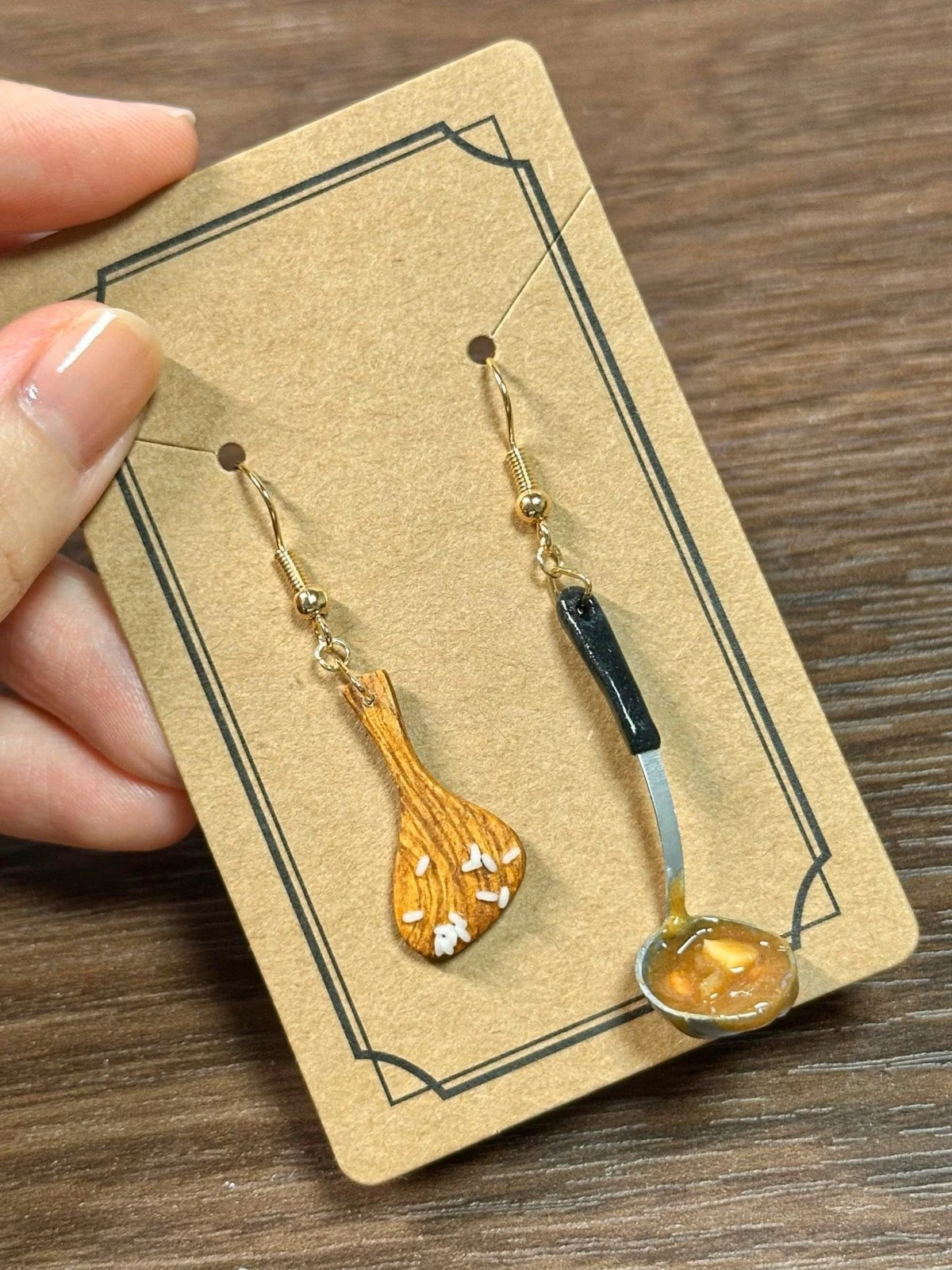 お玉についた具の感じや、カレールウがトロッとしている感じをリアルに表現しています。しゃもじに付いた白ご飯がより一層食欲を引き立てますね。カレーのミニチュアピアス、欲しくなりました!