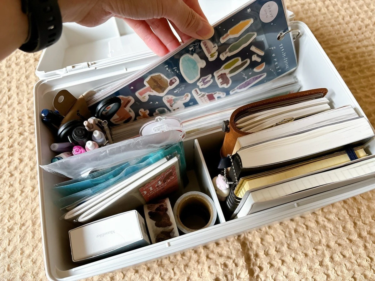 デザインが素敵だったり、あると便利だったりして、集めてしまいがちな文房具。寝る前の手帳や日記を書く時間を楽しむ方もいますよね。救急箱はハンドルもあり、一式を運べるのもうれしい点です。