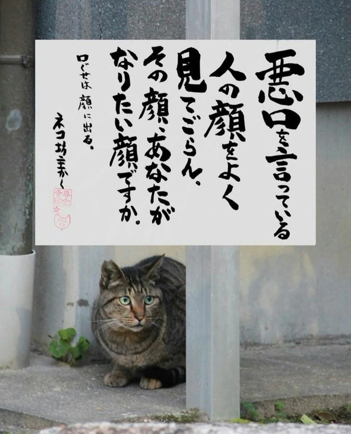 しかし、愚痴や不満ばかりになってしまっているときに思い出してほしい【ネコさんから人間さんへ今日のひと言】を、専念寺/ネコ坊主(@yabumoto610)さんが投稿。人々が自身を振り返るきっかけとなりました。