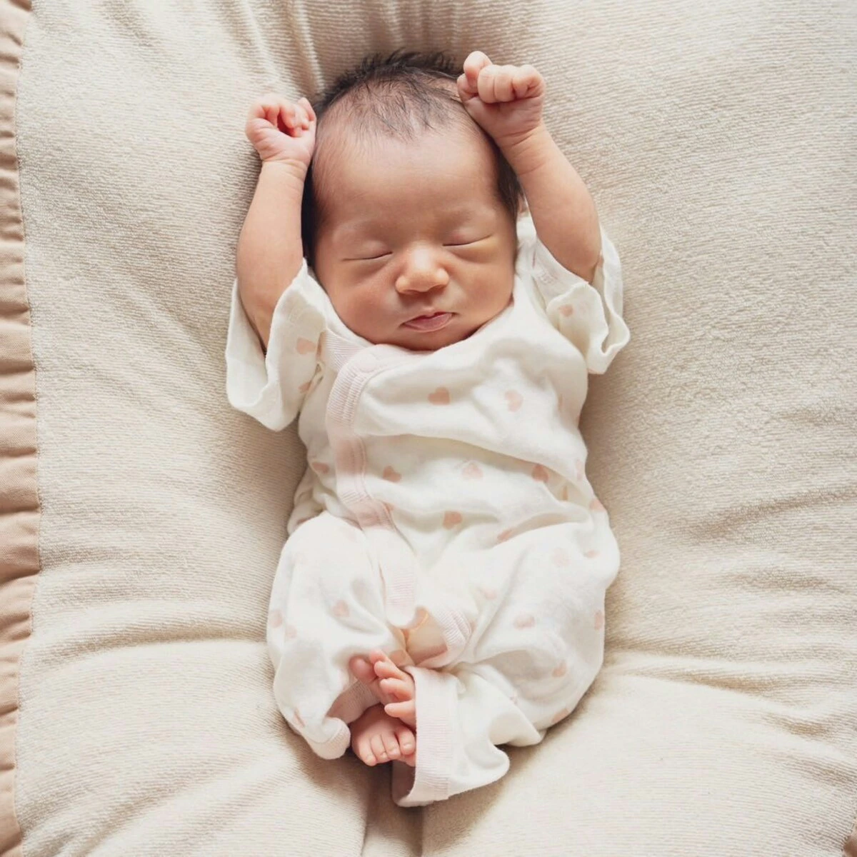 小さな手に小さな足。全てが小さくて「尊い」という言葉がぴったりなかわいい赤ちゃん。ママのおなかから出てきてまだ5日目で、すでにぷんぷんポーズが完璧です。