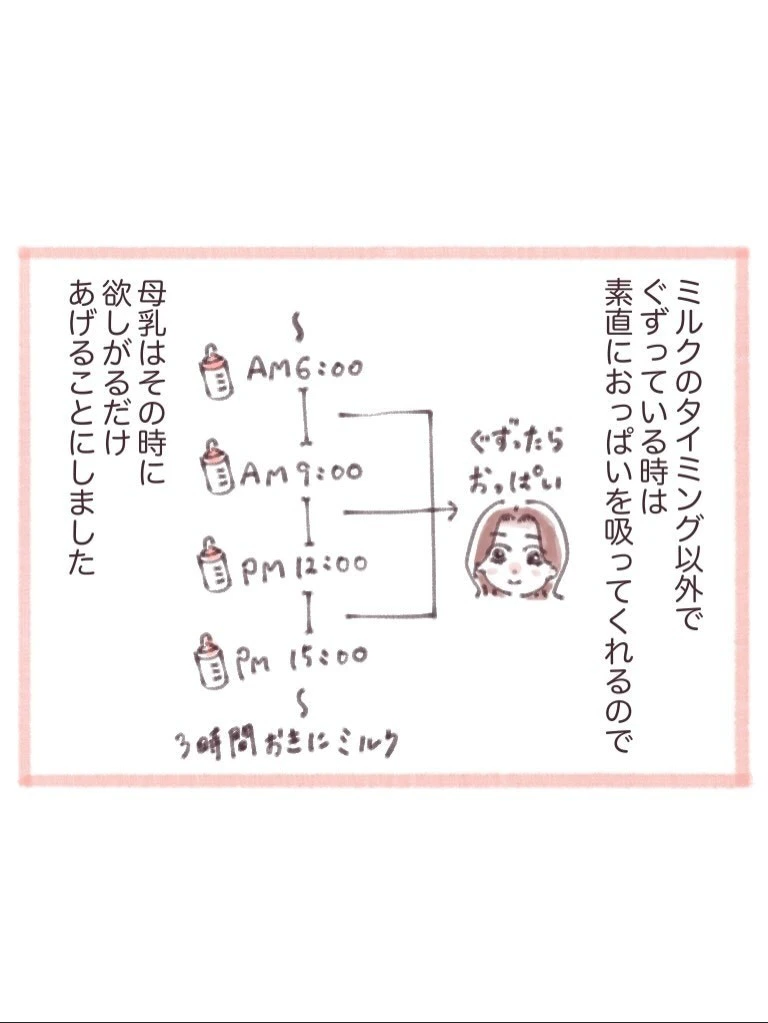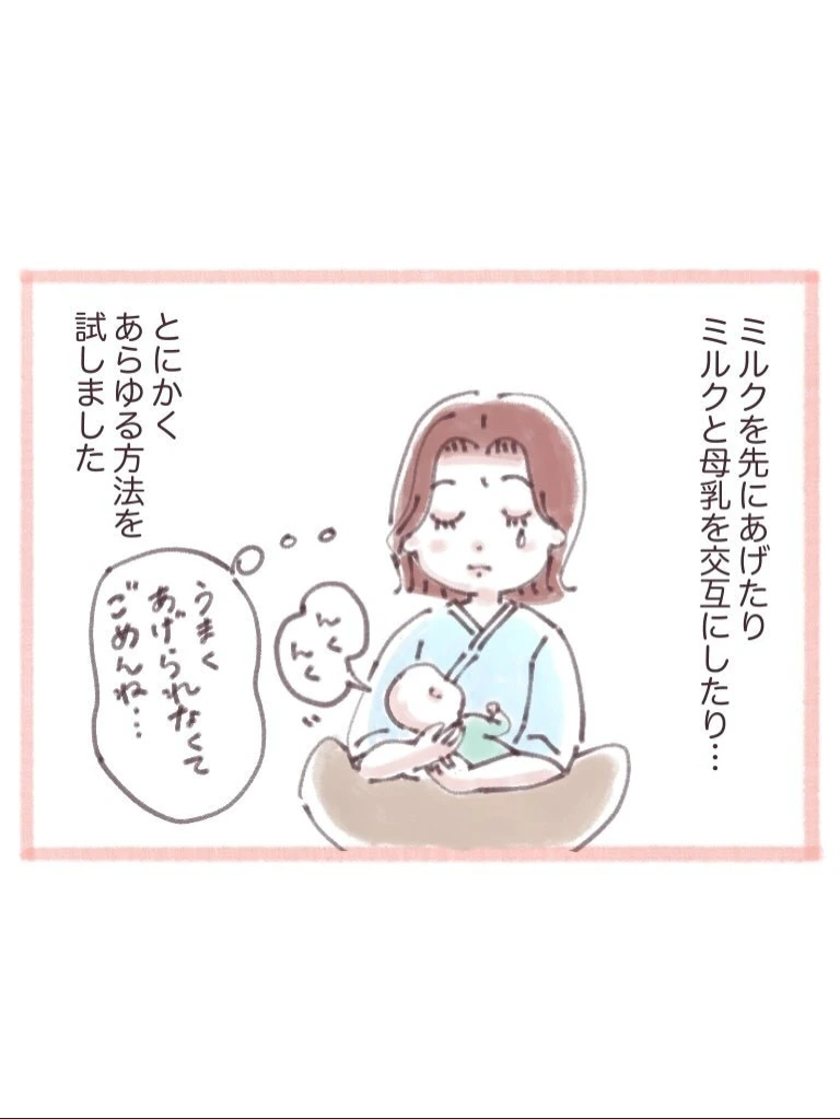 産院での試行錯誤のかいもあり、退院後の授乳は順調でした。しかし、再び母乳を拒否するようになってしまった赤ちゃん…。ミルクメインで、その合間に授乳するスタイルに落ち着きます。