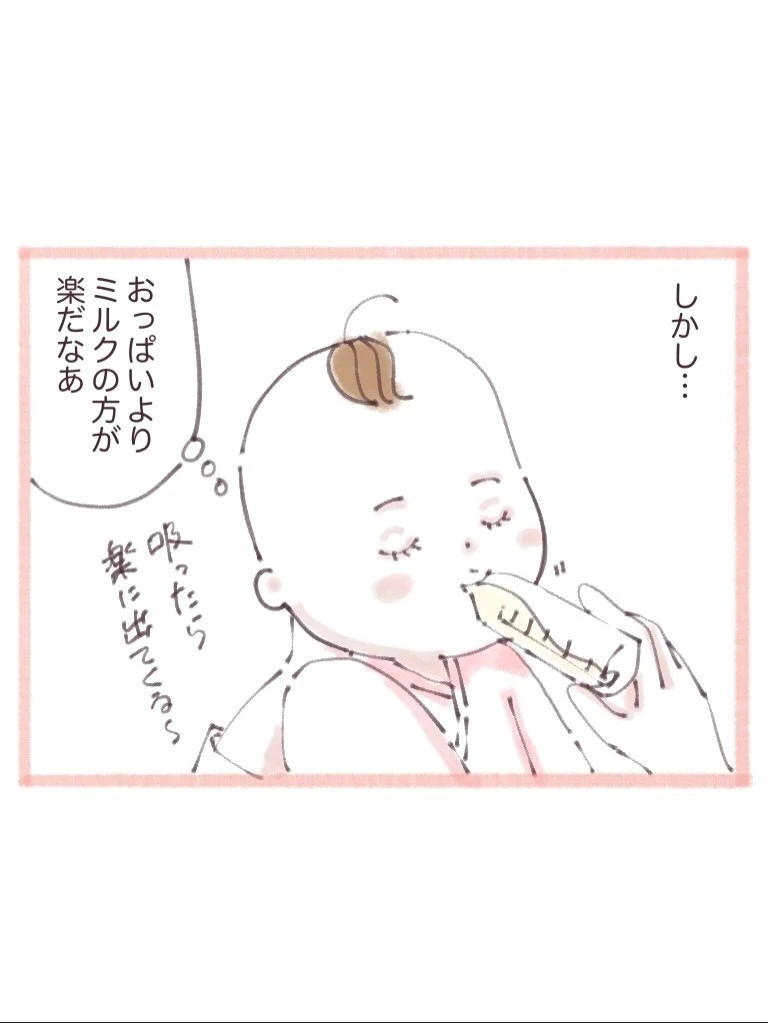 産院での入院中、ミルクを足すことに。しかし、ミルクを飲むのがラクだと気づいた赤ちゃんは、母乳を拒否するようになってしまったのです…。
