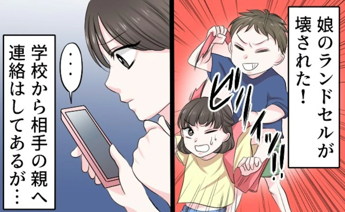 相手の親御さんには学校から連絡をしてもらいましたが、謝罪はありませんでした。ランドセルは高価なものですし、修理に持っていく手間や費用を考えると、原因となった相手の親御さんからはせめて連絡してほしいですよね。