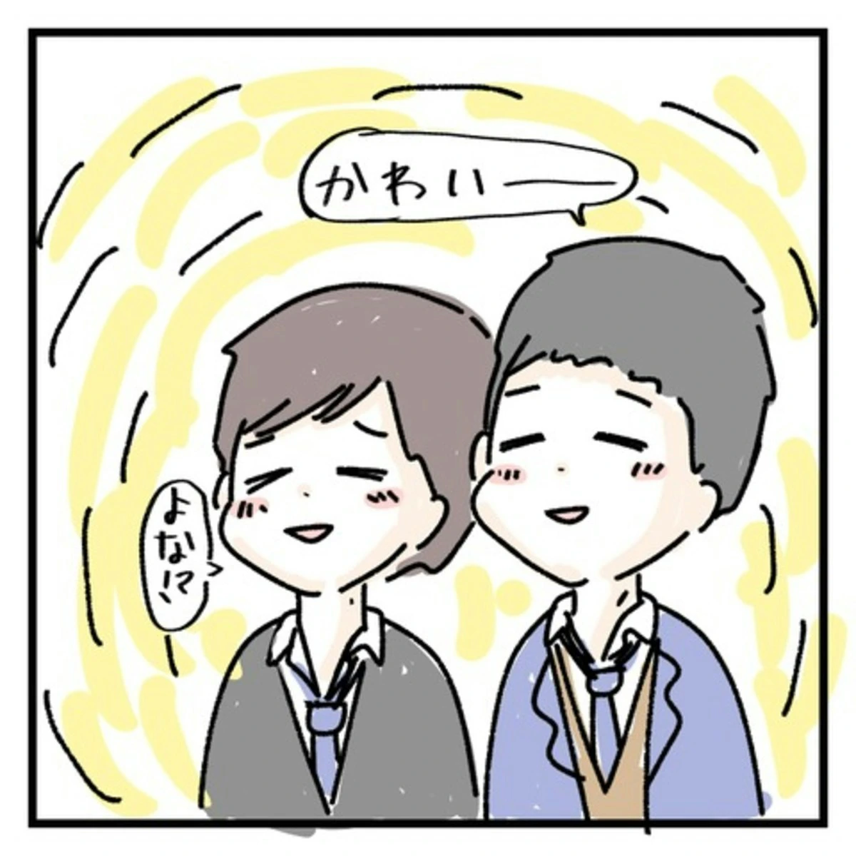 【漫画】赤ちゃんを見かけた男子高校生→友人の肩をたたいて…2千人がほっこり「幸せ」「かわいい」