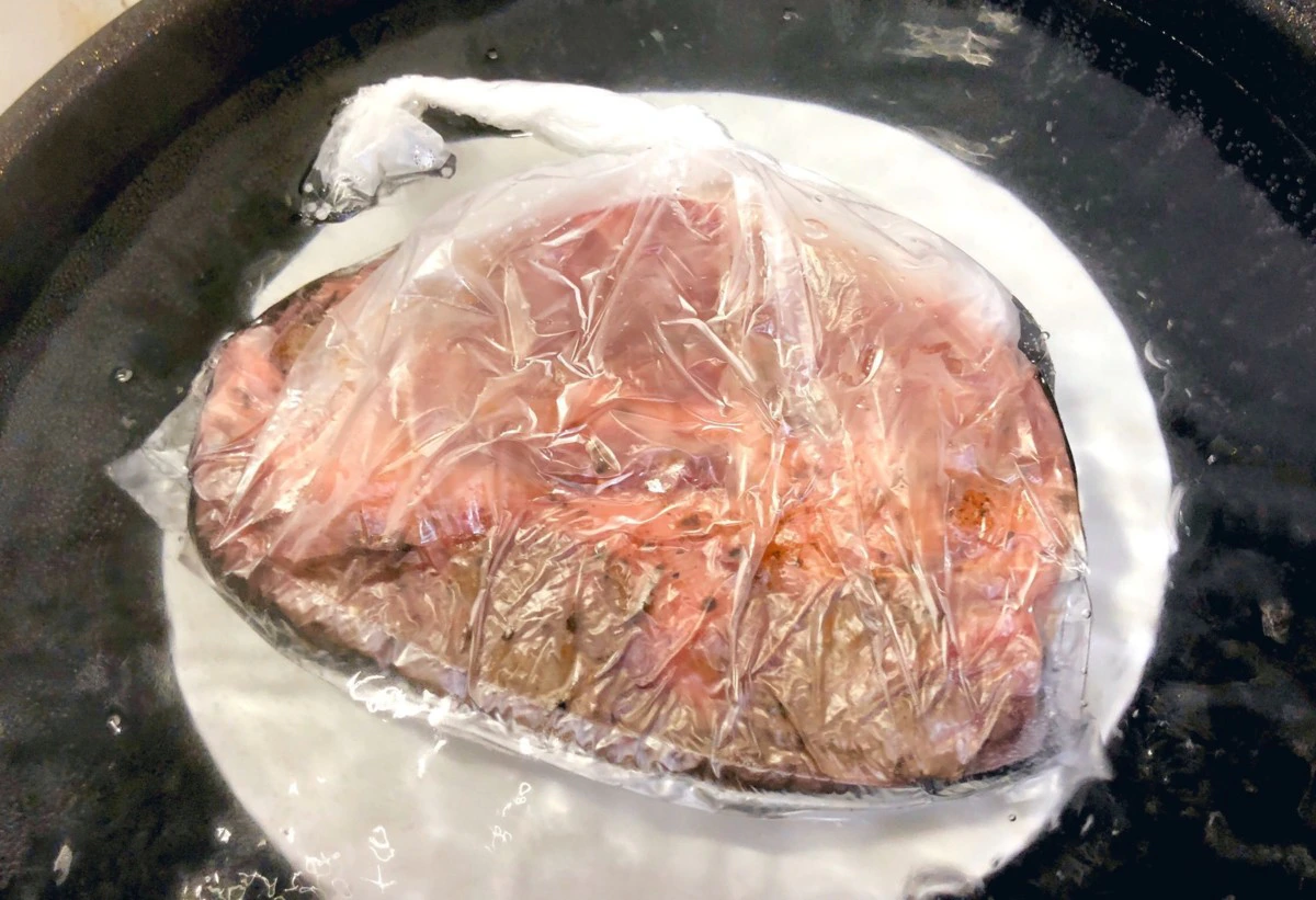 特別な技法というよりは、日本でも広く知られている低温調理の延長にある方法で、アイラップを使うことで手軽に再現できる点をお伝えしています。なお、いわゆる一般的なステーキとは少し異なる仕上がりのため、あくまで「アイラップで作るステーキ風の調理」としてご覧いただければと思います。
